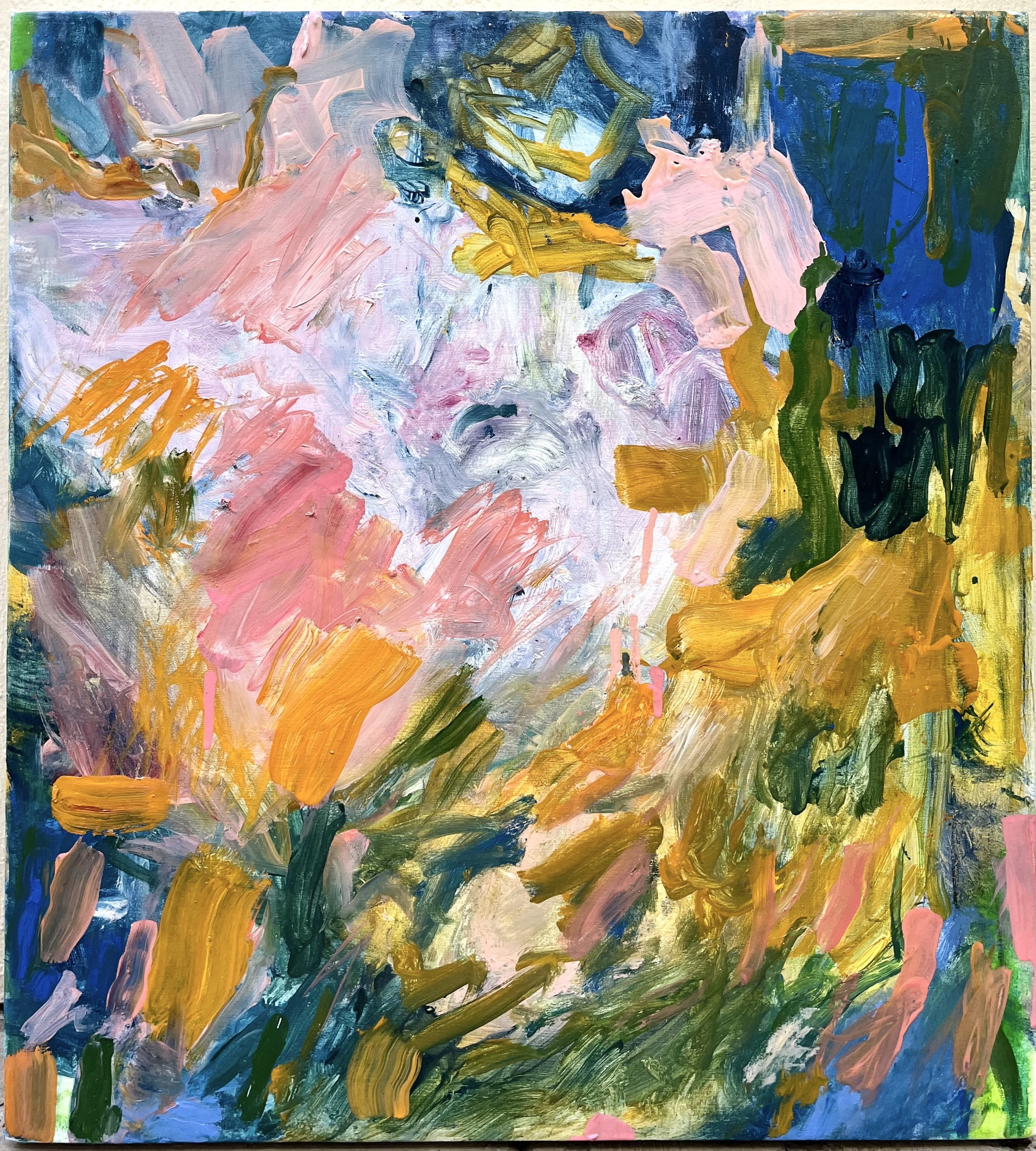 Reed’s paintings move fluidly between the external and internal worlds. His earlier abstract work was grounded in the sensations of nature and the environment around him—what he describes as “the abstraction of the earth.” In 2020, he shifted his attention to the human figure, compelled by “the mystery of the human face, of the portrait, and of the relationship between the face and the memories of the body.” This investigation ultimately led him back to abstraction, now infused with personal and psychological depth—what he calls “the abstraction of dreams and the interior world.”